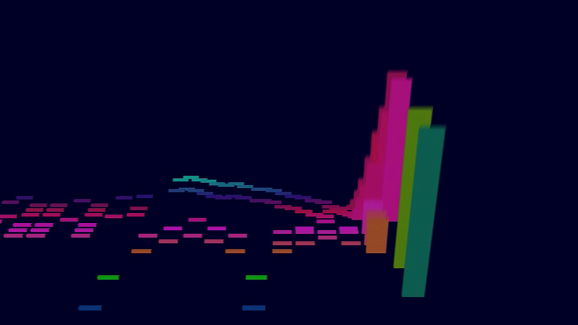 I coded this up in pymel/python in Maya. It reads in midi data, parses it into something readable and outputs the results. Uses the Renderman/3delight technique of primitive variables to set the color range. Output in 3delight.